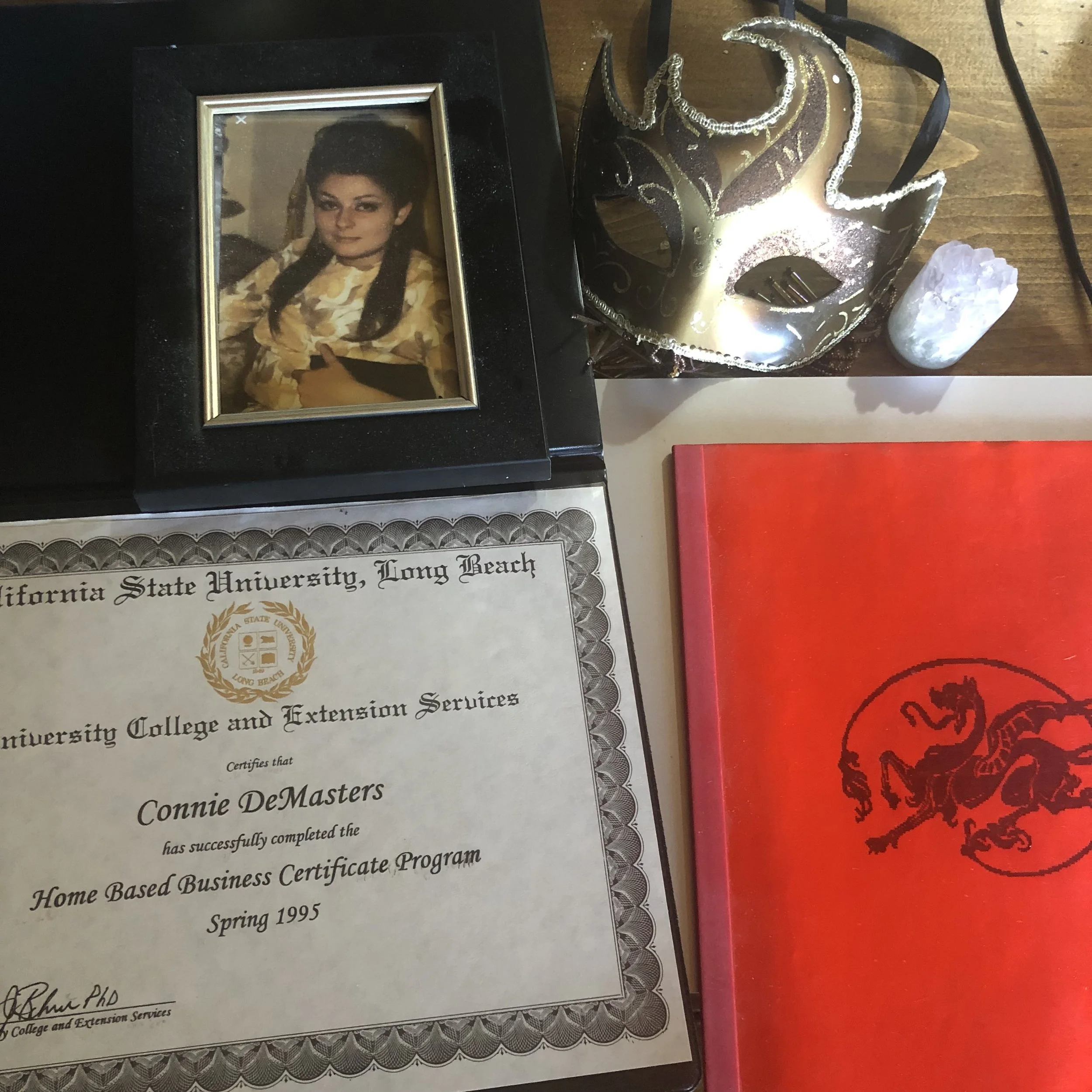 Fifteen years after her passing, a box of Connie de Masters’ Magickal teachings arrived at my doorstep: twenty-three pounds of rituals, hymns to deities, teacher’s curricula for Wicca and Witchcraft classes, spells, plays, charts, astrology, numerology, and chants with Alexa’s note, “I hope you can do something with this stuff.”
