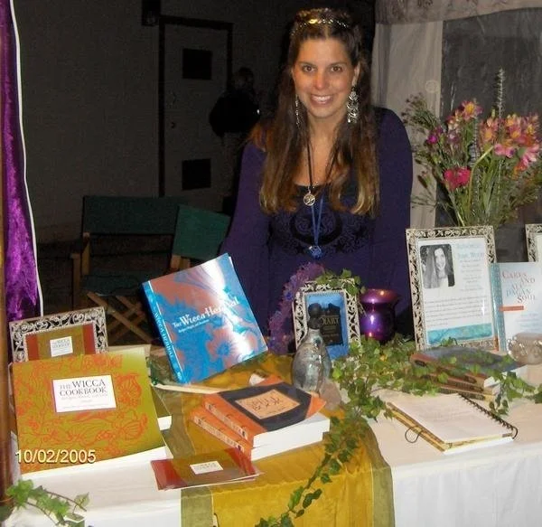 In 1999, I wrote The Wicca Cookbook while pregnant with my second son and so imbued this book with the nuturing tenderness of a fierce Mother. After completing this book, my publisher went bankrupt, which meant that I had to fight to get the rights to my own book and then find a new publisher. This was not an easy time to be Wiccan. But I believed intensely in the beauty and peace found in Witchcraft, and so, another nine months later, The Wicca Cookbook found its long time home with Ten Speed Press. I went on tour, teaching at Whole Food Markets, Barnes & Noble, and festivals with my first book baby and the Wiccan books that followed. This picture is from the KVMR Celtic Rennaisance Fair in Nevada City.