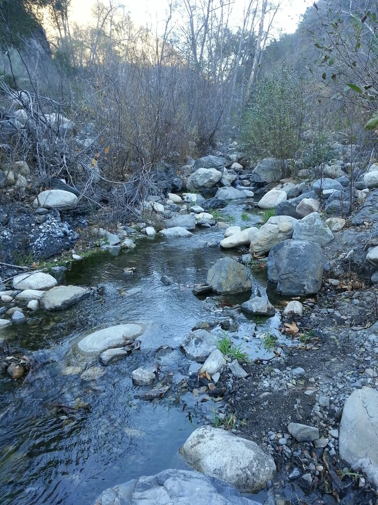 My goal was to get as far into nature as possible - away from overhead wires, technology and civilization - to sit or walk preferably without the sight of technology or people. Recently stirrings that I was becoming overly attached to job performance and staying ahead of emails (ha!) had begun to surface. When tears of longing for the untamed welled up while watching the animated movie Rango, I realized I was in dire need of a dose of wilderness wherever or however I could get it. The rocky road to Holy Jim Falls can seriously dent your underbelly and so no matter how fast or far you want to travel, you are limited by a certain reality. As I managed severe dips and huge rocks, I thought of a conversation I had with Jeff when I had suggested traveling up the coast to Oregon and he countered with a trip to Joshua Tree." The desert is another climate. You just want to drive longer to feel like you're getting further away," he said.